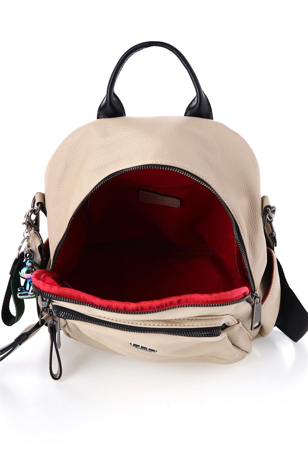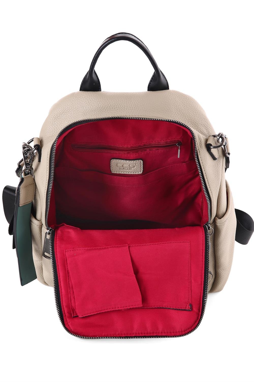 - Çantamızın 1 adet fermuarlı ana bölmesi bulunmaktadır. Ana bölme içerisinde 1 adet fermuarlı, 3 adet açık cep bulunmaktadır.